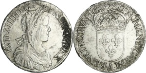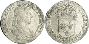 Lot 38/707 ROYAL FRENCH COINS - Louis XIV :: France - Louis XIV (1643-1715) - Ecu au buste juvénile, 1er type - 1664 L (Bayonne)