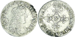 Lot 38/700 ROYAL FRENCH COINS - Louis XIV :: France - Louis XIV (1643-1715) - ¼ écu à la mèche courte - 1644 A (Paris)