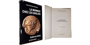 Ouvrage à couverture rigide avec jaquette papier, traitant de la monnaie chez les Gauois. Ouvrage de 179 pages de descri ...