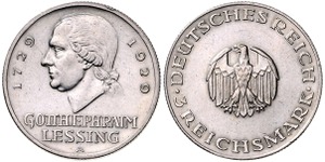 3 Reichsmark 1929 A Zum 200. Geburtstag von Gotthold Ephraim Lessing. Jaeger 335. f.vz ...