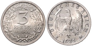 3 Reichsmark 1931 A. Jaeger 349. vz+ ...