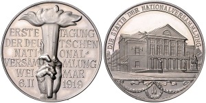 Silbermedaille 1919 (v. Hummel) auf die erste Tagung der Deutschen Nationalversammlung in Weimar. 33,0 mm, 14,33 g. PP ...