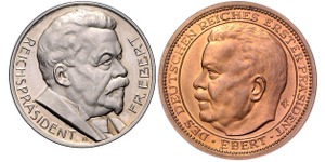 Lot von 2 Stücken: Silbermedaille 1925 (v. Hummel) auf den Tod von Friedrich Ebert, i.Rd: 990 (33,4mm 15,0g) | Bronzemed ...