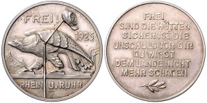 Silbermedaille 1925 (v. Lauer) auf die Rheinlandbefreiung. 33,4 mm, 14,82 g. vz-st ...