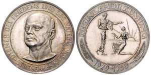 Silbermedaille 1930 (v. Glöckler) auf Gustav Stresemann und die Rheinlandräumung 1929-1930, i.Rd: PREUSS. STAATSMÜNZE SI ...