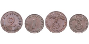 Lot von 2 Stücken: 1 Reichspfennig 1936 G und 2 Reichspfennig 1936 F. Jaeger 361,362. ss-ss+ ...