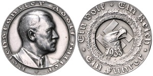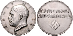 Silbermedaille o.J. (v. Hörnlein) Adolf Hitler / Du bist nichts, dein Volk ist alles, i.Rd: SÄCHS. MÜNZE 835. C/H -, AFA ...