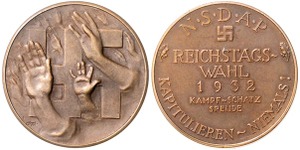 Mattierte Bronzemedaille 1932 NSDAP Kampf-Schatz Spende zur Reichstagswahl. 35,5 mm, 21,00 g. vz ...