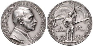 Silbermedaille 1933 (v. Karl Goetz) DEUTSCHLAND ERWACHE, i.Rd: BAYER. HAUPTMÜNZAMT FEINSILBER. C/H C-34, Kienast 483, Sl ...