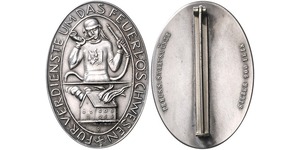 Silberanstecker FÜR VERDIENSTE UM DAS FEUERLÖSCHWESEN, rückseitig: PREUSSISCHE STAATSMÜNZE SILBER 900 FEIN, gestiftet 21 ...