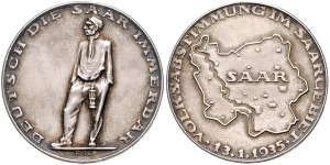 Lot von 2 Stücken: Silbermedaille 1935 (v. Fritz Kölle) auf die Saarabstimmung, i.Rd: BAYER. HAUPTMÜNZAMT FEINSILBER und ...