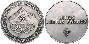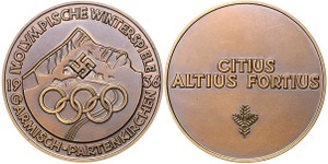 Bronzemedaille 1936 auf die IV. Olympischen Winterspiele Garmisch-Partenkirchen, für Teilnehmer. 60,4 mm, 65,60 g. st ...