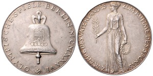 Offizielle Erinnerungsmedaille 1936 (v. Roth) der Olympischen Spiele in Berlin, i.Rd: PREUSS. STAATSMÜNZE FEINSILBER. 36 ...