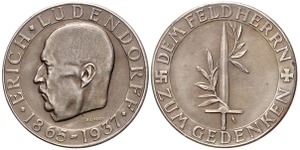 Lot von 2 Stücken: Versilberte Bronzemedaille 1937 (v. Bleeker) auf den Tod von Erich Ludendorff, i.Rd: HAUPTMÜNZAMT WIE ...