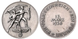 Versilberte Bronzemedaille 1938 (v. Klein) auf den Anschluss Österreichs an das Deutsche Reich. entfernte Öse 32,4 mm, 1 ...