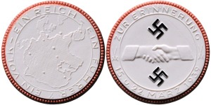 Porzellanmedaille 1939 Besetzung der Tschechoslowakei / Ein Reich - ein Volk - ein Führer, Meissen, weiß, mit hellbraune ...