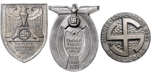 Lot von 3 Stücken: Abzeichen der Kommission für Wirtschaftspolitik 'Großer Lehrgang München 1934' | NSDAP Gau-Abzeichen ...