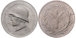 Zinkmedaille 1940 auf die 4. Panzerdivision-Aufklärungsabteilung 7. Hüsken 10.04.80/1. sehr selten 51,1 mm, 45,90 g. vz ...