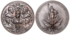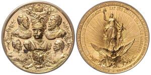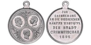 Aluminiummedaille 1895 (unsign.) Drei Medaillons mit den Büsten von Kaiser Wilhelm I., König Albert von Sachsen und Bism ...