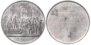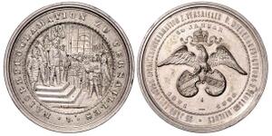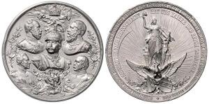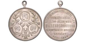 Versilberte Bronzemedaille 1896 (v. Beyenbach) Proklamationsszene im Strichkreis / 12 Zeilen Schrift, 25 JÄHRIGER GEDENK ...