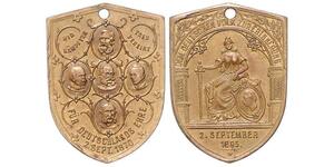 Bronzemedaille 1895 (v. Mayer/Schäfer/Dürrich/Christaller) Kaiserbüste in Uniform der Garde du Corps zwischen den Büsten ...