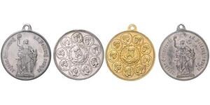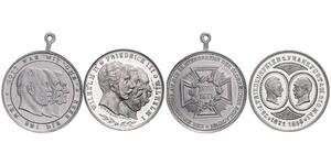 Lot von 4 Messingmedaillen o.J. (v. Balmberger) Im Efeukranz Brustbild von Wilhelm I. im Hermelin, umgeben von 9 Medaill ...