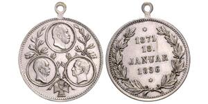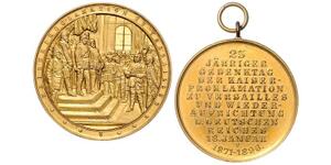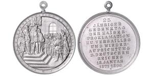 Bronzemedaille 1896 (v. Werner/Weckwerth) Proklamationsszene, im Abschnitt 3 Zeilen Schrift 25 JÄHR. GEDENKTAG DER KAISE ...