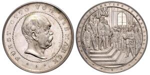 Silbermedaille 1896 (v. Bergmann) Barhäuptiges Brustbild in Uniform nach rechts, FÜRST OTTO V. BISMARCK / Im Perlkreis g ...