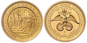 Vergoldete Bronzemedaille o.J. (v. Beyenbach) Im Kordelkreis gekrönter Adler hält die Wappenschilde von Elsass und Lothr ...