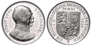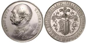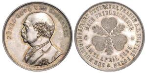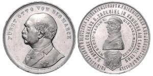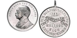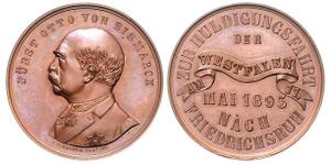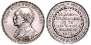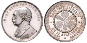 Silbermedaille 1895 (v. Bergmann) Barhäuptiges Brustbild in Zivil mit Orden nach links, FÜRST OTTO VON BISMARCK / Mittig ...