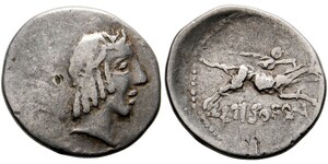 Denarius (3,53g) Stilisierter Kopf des Apollon mit Lorbeerkranz / Stilisierter Reiter mit Palmzweig. Vorbild ist ein Den ...