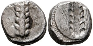 Didrachme / Nomos (7,4g) ca. 470-440 v. Chr. Ähre / Ähre inkus. Noe Class X-XI, HN Italy 1484-1485. Stellenweise leichte ...