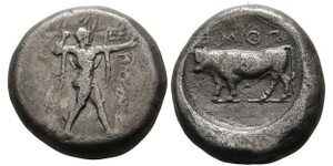 Didrachme / Nomos (7,71g) ca. 470-445 v. Chr. Poseidon mit Chlamys und Dreizack / Stier. SNG ANS 651-653, HN Italy 1114. ...