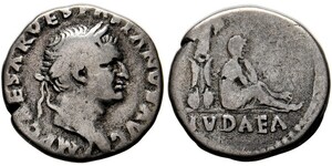 Denarius (3,02g) Roma, Dezember 69-Anfang 70 n. Chr. Kopf mit Lorbeerkranz / IVDAEA (im Abschnitt), Iudaea im Trauergest ...