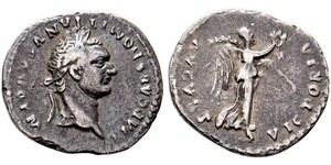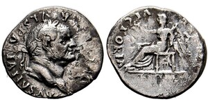 Quinarius (1,55g) 75 n. Chr. Roma, Kopf mit Lorbeerkranz / Victoria mit Kranz und Palmzweig auf Sella. RIC II² 801 (R2), ...