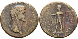Sestertius (23,2g) Gegenstempel (NCAPR) aus der Regierungszeit der Flavier (ab 71/72 n. Chr.) auf einem Sestertius des C ...
