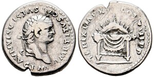 Denarius (3,06g) Roma, Jänner-Juni 80 n. Chr. Kopf mit Lorbeerkranz / Diadem auf Thron. RIC II² 124, RSC II 313a. Randke ...