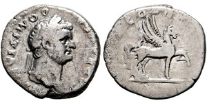 Denarius (3,04g) Roma, Anfang 76-Anfang 77 n. Chr. Kopf mit Lorbeerkranz / Pegasus. RIC II² 922 (Vespasianus), RSC II 47 ...