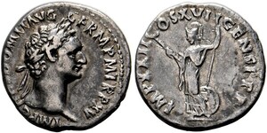 Denarius (3,43g) Roma, September 95-September 96 n. Chr. Kopf mit Lorbeerkranz / Minerva mit Fulmen (Blitzbündel) und La ...