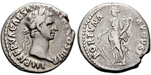 Denarius (3,46g) 97 n. Chr. Roma, Kopf mit Lorbeerkranz / Fortuna mit Ruder und Cornucopiae. RIC II 16, RSC II 66. ; f.s ...
