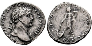 Denarius (3,13g) 101-102 n. Chr. Roma, Kopf mit Lorbeerkranz / Mars mit Lanze und Tropaeum. RIC II 52, RSC II 228, MIR 1 ...
