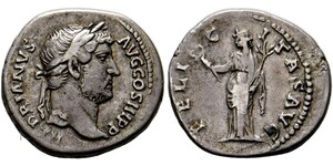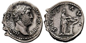 Denarius (3,56g) ca. 133-135 n. Chr. Roma, Kopf / Salus mit Patera vor Altar mit Schlange. RIC II.3 2048, RSC II 1335. W ...